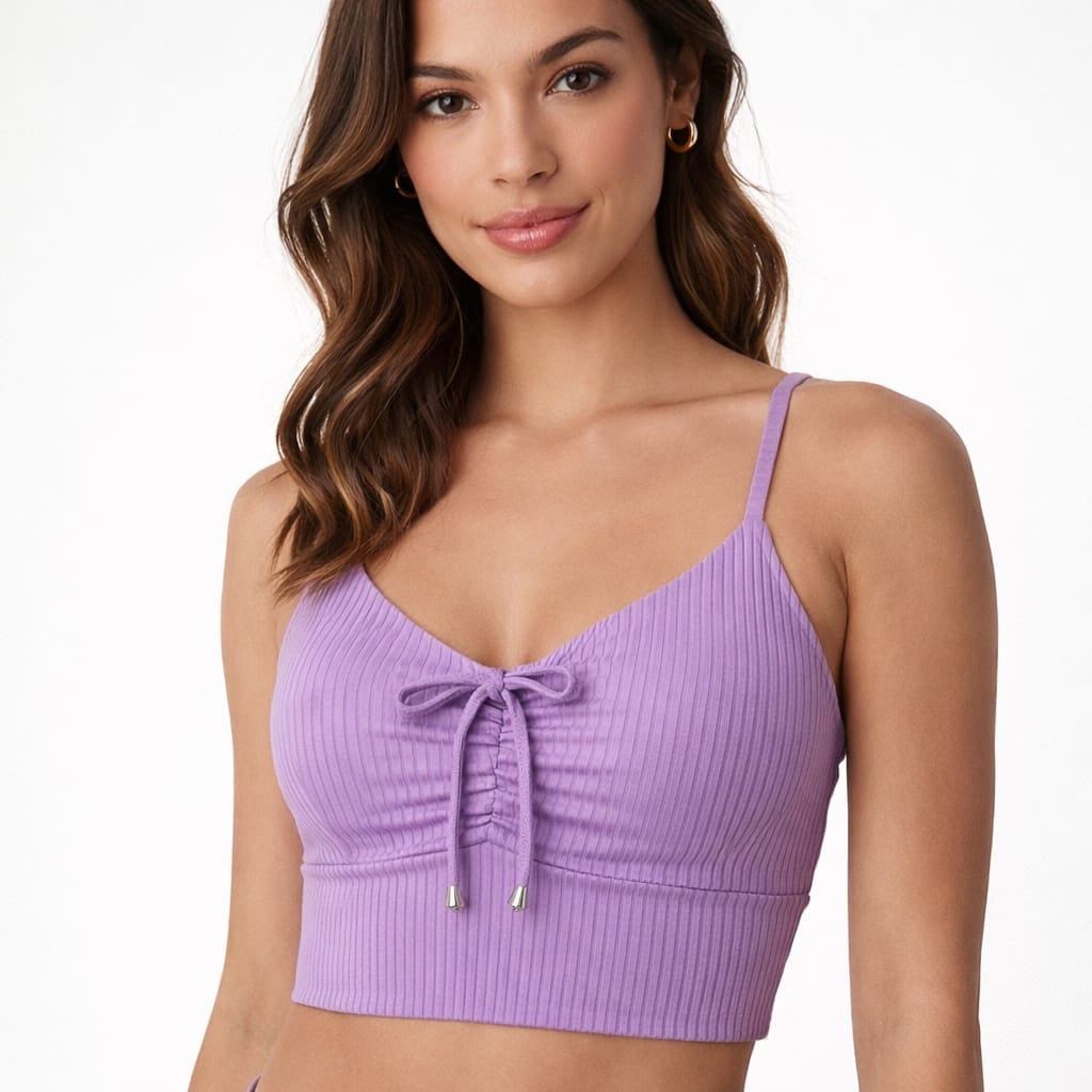 Em malha canelada com detalhes na frente, elasticidade e conforto
