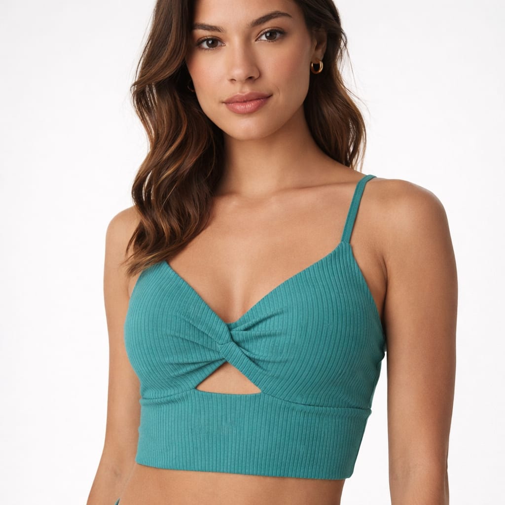 Em malha canelada com detalhe de drapiado no busto, elasticidade e conforto